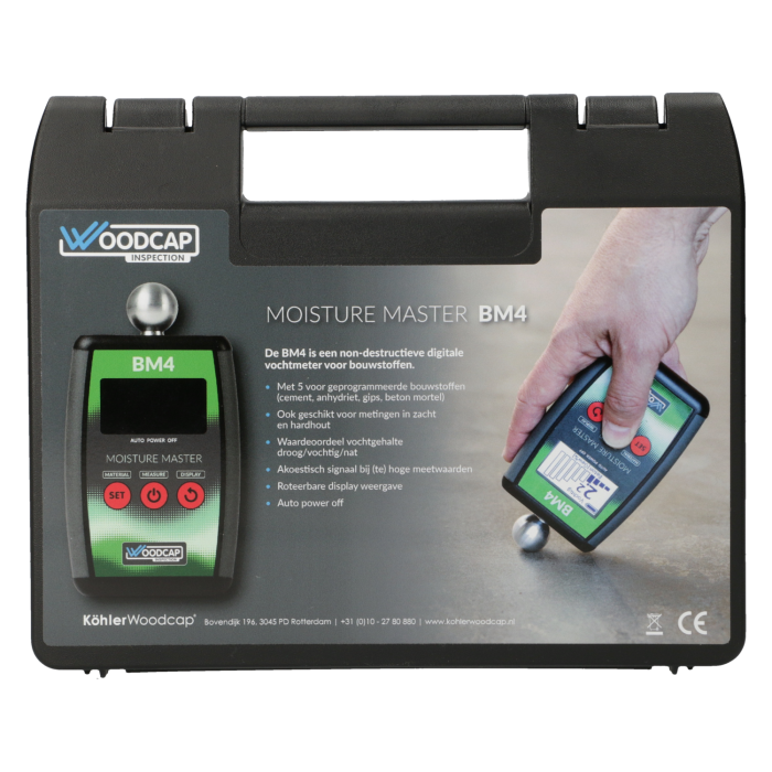 Het dient voor het nauwkeurig en snel meten van vochtpercentages in de 5 meest voorkomende bouwstoffen, zoals cement, anhydride dekvloeren, beton, kalkmortel en gipspleister. Deze zijn door middel van één toets te selecteren. De BM4 is tevens te gebruiken om indicatieve metingen te doen op houten ondergronden. De BM4 meet tot een diepte van 2 cm in het materiaal. Met de bolsensor zijn oppervlakken eenvoudig te scannen en ruwe oppervlakken ook goed te meten. De BM4 heeft een stevige stootvaste behuizing met rubber grip.